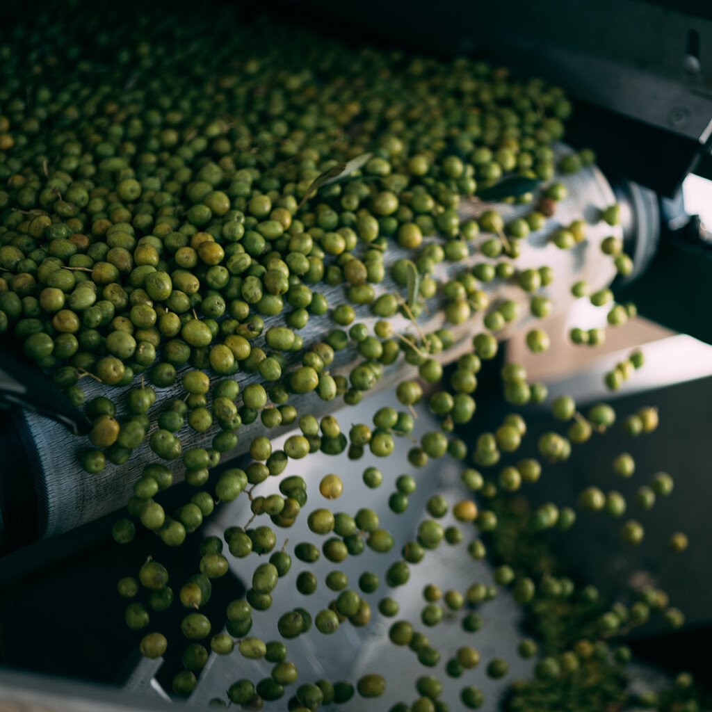 完熟前のオリーブを丁寧に収穫し、24時間以内に低温圧搾することで豊かな香りとポリフェノールを最大限に保持。